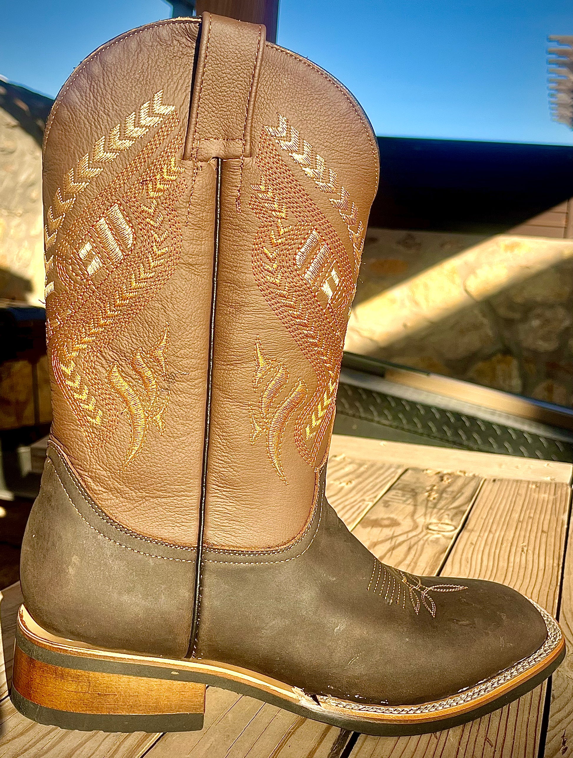 Handcrafted from premium full-grain leather, this boot combines deep whiskey-brown tones with golden western stitching for a clean, rugged finish. Whether you’re breaking horses, welding steel, or stepping out on a Friday night, this boot brings the balance of toughness and style.